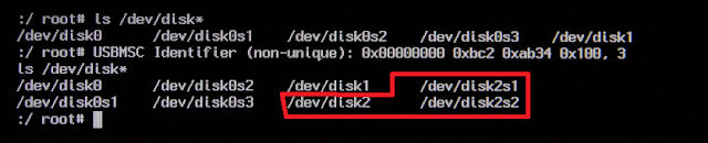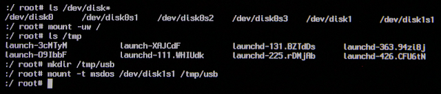 - mount -t hfs /dev/disk2s2 /tmp/usb (for HFS)