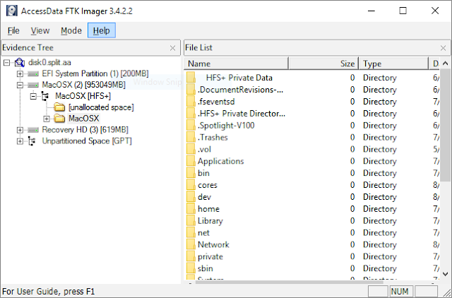 As a last step, I just wanted to show how each image looked when opened in FTK Imager.