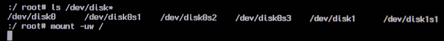 In order to mount the USB drive, the system drive will need to be changed to read/write by using mount -uw: