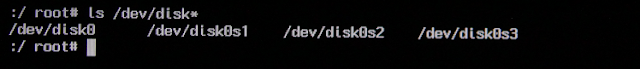 The next step is to determine what block device to copy for the dd command. In order to determine this, use the ls command to get a list of the available disks under the /dev directory. As I mentioned before, I prefer to do this before I plug the USB drive in so I don’t have to try and guess which is the internal hard drive and which is the USB drive. (OS X has a disk utility called diskutil that presents more verbose information about the disks, however, it is not available in single-user mode)